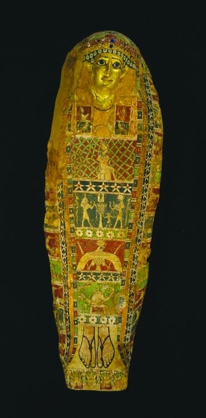木乃伊外壳制作的最后一道工序是在表面刻写经文和绘制与墓葬相关的图画,许多写有希腊文和科普特文的纸草就以这种方式被保存了下来。萨福一定未曾料想,她的诗尘封2500多年以后被今天的人阅读和欣赏,借助的是埃及的木乃伊。