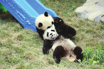 上海野生动物园的饲养员介绍,月月和半半非常活泼,现在正是小家伙们最好动的时段,不仅可以熟练自如地上下1米多的栖架,在草地上自由翻滚更是小菜一碟,最近小家伙们爱上了饲养员为它们新添置的“儿童滑梯”。总的看来,哥哥性格外向、活跃,喜欢探险、打架、爬上爬下,适应环境能力较强;妹妹性格安静、聪慧,同时也喜欢尝试新鲜事物,非常可爱。