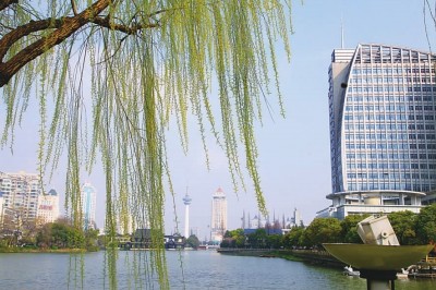 今天的南通是建立在一个名叫胡逗洲的沙洲之上的。后周显德五年(公元958年)南通建城,称通州。建城者巧用地势,借胡逗洲发育过程中形成的四周水泊,挖掘加工成环城的濠河,城内留池塘,开市河,基本奠定了南通水城的格局。濠河的城北段与东南、西南段水面宽阔,原是三个不相连的水泊,聪明的工匠开挖水道使之相连相通,于是,濠河就形成一个“口”字形,成为一条护城河。千百年来,濠河既要担负起城市防卫的责任,又要承担运输、灌溉农田、排涝的职责,还起到美化环境的功能。如果南通是一个美女,那么濠河就是美女颈项上一串璀璨的项链。濠河全长10公里,水面1040亩,最宽处215米,水波浩渺,仿若湖泊,最窄处仅10米,又似一根玉带,整个河段曲曲折折,像一个倒置的葫芦环抱着城市,水抱城,城依水,城水一体。放眼望去,碧波荡漾,岸柳青翠,鸥鸟低飞,鱼游水面。