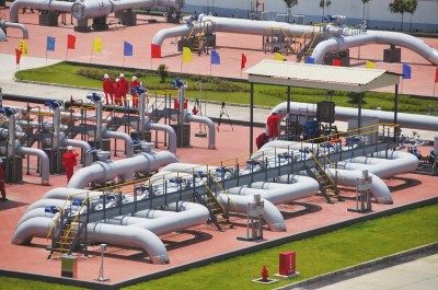中国石油天然气集团公司19日宣布,中缅原油管道原油于当日16时正式由云南瑞丽进入中国。作为“一带一路”倡议在缅甸实施的先导项目———中缅油气管道项目的一部分,中缅原油管道工程今年4月正式投入运行,此次境内外投产管道全长1420公里。图为瑞丽输油气站一景。新华社记者 姚兵摄
