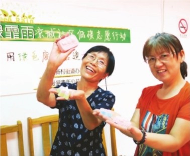 学做环保酵素,是爱易青年公益服务社的另一个特别活动。果皮蔬菜通过时间的发酵成为环保产品,在此基础上,“爱易”还带动社区妈妈们开始做各种各样的酵素肥皂。闲置的毛衣也有了特殊的价值,在“爱易”的组织下,搁置在居民衣柜中的一件件毛衣,通过拆线、消毒,再由社区里的爱心妈妈重新编织。目前,“爱易”已经向安徽省长丰县朱巷镇坚朗希望小学捐赠了200件由爱心妈妈利用废旧毛线编织的毛衣。