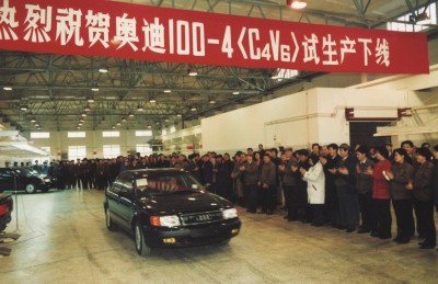 同样艰困的情境不仅仅发生在“国民神车”桑塔纳身上,作为汽车消费市场重要的高档轿车消费领域,“中国制造”也远远供应不足。当时,我国工业经济正处在一个结构转换时期。多年以来形成的中低档产品为主的工业产品结构亟须升级迭代。大量高档轿车进口消耗了原本就很稀缺的外汇资源,中国亟需发展自己的汽车工业。因时而为,顺时而动,正是在这样的因缘际会下,肩负着中国汽车工业梦想的一汽与正在欧洲市场谋求全面复兴的奥迪,于1988年走到了一起,共同谱写出了中国汽车产业发展历史上最华美的篇章。这一年正是中国市场历经的第二次“下海”浪潮汹涌的时期,大型国企如中国国际航空和东方航空公司相继成立,在今日被视为行业楷模的民营企业华为也孕育待发。几经沉沦的创维、风光无限的万达,甚至国际日化巨头宝洁也纷纷通过合资公司的方式进入中国。紧随时代步伐的中国汽车产业开启了中国高档车消费市场的元年,也成为了中国汽车产业追求更高技术和更高品质的开始……