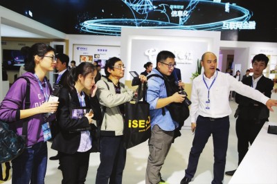 左图:中国电信提供全方位信息服务。智慧金融,吸引众多客户的目光。摄影 胡宝平