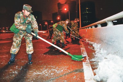 本报讯 昨天早晨,市民们惊讶地发现,申城不仅有白雪美景,更有干净整洁的马路、细致周到的防滑措施……之所以有此番井井有条的面貌,是因为这座城市有着精细化的管理,是因为有彻夜奋战、扫雪除冰的武警官兵以及环卫、路政、公安交警等所有坚守在一线的人们。
