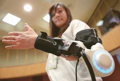 图为“赛博动力”(Cyberdyne) 公司两年前研发的机械外骨骼手臂。本版图片 视觉中国