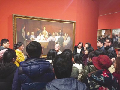连日来热展的“从石库门到天安门———上海美术作品展”春节期间仍在中华艺术宫延续观展的奇迹,截至记者发稿时,累计观展人数逾66万人次。象征中国共产党走过96年卓越历程的96幅艺术作品,讲述的是中国共产党心怀宏大理想、情系广大人民的一个个精彩故事。借由这些作品富有代表性的艺术符号、生动的画面和精湛的艺术语言,中共一大召开、南昌起义、抗日战争、上海解放、改革开放等一系列重大历史事件在人们眼前依次展开,看得人心潮澎湃。展览感人至深的温度,尤其来自老一辈艺术家自觉描绘现实生活的一大批真挚作品,如林风眠的《轧钢》、沈柔坚的《船坞中》、陆俨少的《新安江上》、吕蒙的《造万吨轮》、谢之光的《万吨水压机》,颜文樑的《造船厂》,陈逸飞、魏景山的《开路先锋》,沈嘉蔚的《为我们伟大祖国站岗》、程十发的《我们的朋友和同志遍于全世界》。