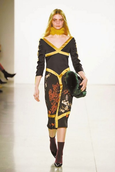 比如,有设计师将中国传统敦煌壁画的艺术元素推向纽约时装展台,以一组“敦煌色”琥珀、酒绿、陈黄和朱砂,还原1000多年前莫高窟的曼妙色彩,以灵动飘逸的丝绸模仿飞天蹁跹舞动的纱衣,成为时装周上一抹亮眼的颜色。另一位设计师结合复古制服和流行艺术的设计也备受海外评论的赞誉,将流苏刺绣、黄金扣饰和独特的图案大胆配以鲜艳的颜色,冲击眼球。