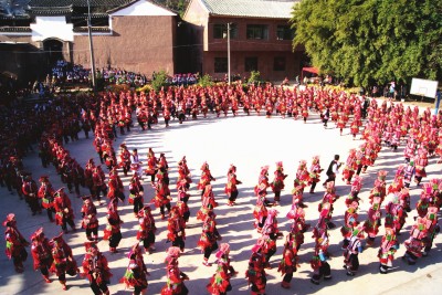 在云南石屏县哨冲镇一带的滇南深山中,彝族尼苏支系长居于此。这里的姑娘心灵手巧,亲手绣出火红的盛装彩服,全身上下都布满各种各样的花纹图案。由于其所穿服饰光彩照人、绣花腰带更是鲜艳夺目,人们亲切地将他们称为“花腰彝”。
