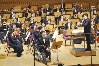 本报讯 (记者姜方)作为第35届上海之春国际音乐节参演节目,《向经典致敬———陆在易作品音乐会》4月29日晚在上海交响乐团音乐厅上演。演出现场,廖昌永因右腿受伤坐着轮椅上台,领衔演唱音乐抒情诗 《中国,我可爱的母亲》,赢得在场观众雷鸣般的掌声。