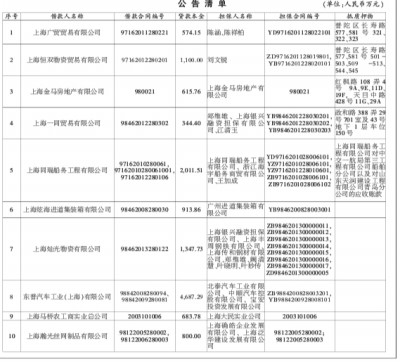 注:1.本公告清单仅列示截至2018年1月10日的贷款本金余额,借款人及担保人应支付给上海浦东发展银行股份有限公司上海分行的利息及相关权益,按借款合同、担保合同及中国人民银行有关规定或生效法律文书确定的方法计算。