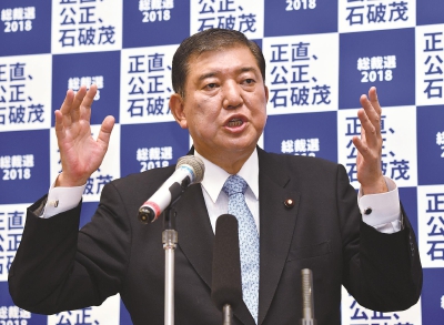 日本执政党自由民主党前干事长石破茂10日举行记者会,正式宣布参加下月自民党总裁选举。日本媒体认为,石破是首相安倍晋三寻求连任的最有力劲敌,两人预计将上演 “一对一”决战。