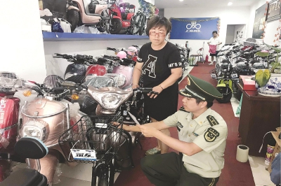 近日,奉贤、嘉定、青浦和崇明等市郊结合区域的消防部门,对区域内电动车销售点进行 “地毯式”隐患排查,整治“三合一”场所,杜绝消防安全隐患。 本报记者 赵立荣摄
