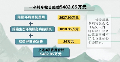 原告是 “江苏省人民政府”,法定代表人写着江苏省省长吴政隆的名字,赔偿金额超过5000万元……8月27日,泰州市中级人民法院一审公开宣判的一起案件,引起了社会的广泛关注。据了解,在全国范围内,省级人民政府作为单独原告起诉企业的生态环境损害赔偿案,进行宣判的还是头一例。
