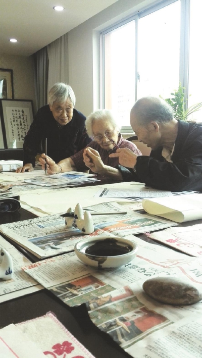 图2:蝴蝶湾敬老院老人魏美娟作画;