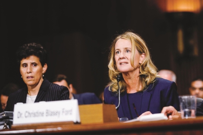美国总统特朗普提名的联邦最高法院大法官候选人卡瓦诺以及指认他性侵的女教授福特27日在国会参议院司法委员会作证,接受议员问询。