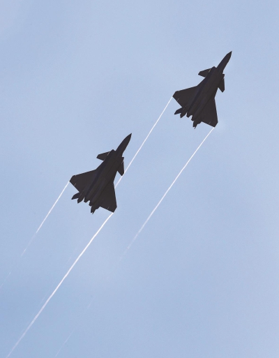 2、空军多架歼-20战机这次以新涂装、新编队、新姿态出场。这一机型是中国自主研制的新一代隐身战斗机,于2016年11月在中国航展首次公开飞行展示。