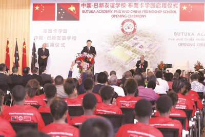 “中国有句古语‘十年树木,百年树人’……人才是第一资源。我们援建布图卡学园的目的就是帮助贵国培养人才,授人以鱼不如授人以渔。相信人才辈出一定会为巴新实现可持续、后来居上的发展提供强有力支撑。”