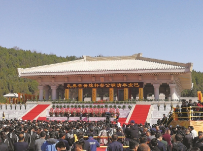 本报黄陵4月5日专电(驻陕记者韩宏)万里寻根古柏千丛迎赤子,亿民戴德心香一炷祭黄陵。己亥(2019)年清明公祭轩辕黄帝典礼今天上午在陕西省黄陵县隆重举行。万余名海内外中华儿女齐聚桥山祭祀广场,共同祭奠人文初祖轩辕黄帝,表达慎终追远、传承文明的崇高感情。全国人大常委会副委员长郝明金、全国政协副主席苏辉、台湾中华文化永续发展基金会董事长刘兆玄敬献花篮;中共陕西省委书记、省人大常委会主任胡和平代表中共陕西省委、省人大常委会、省政府、省政协和陕西各界敬献花篮;新党主席郁慕明携台湾青少年代表敬献花篮。